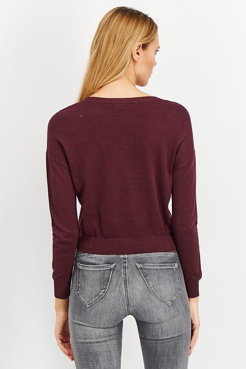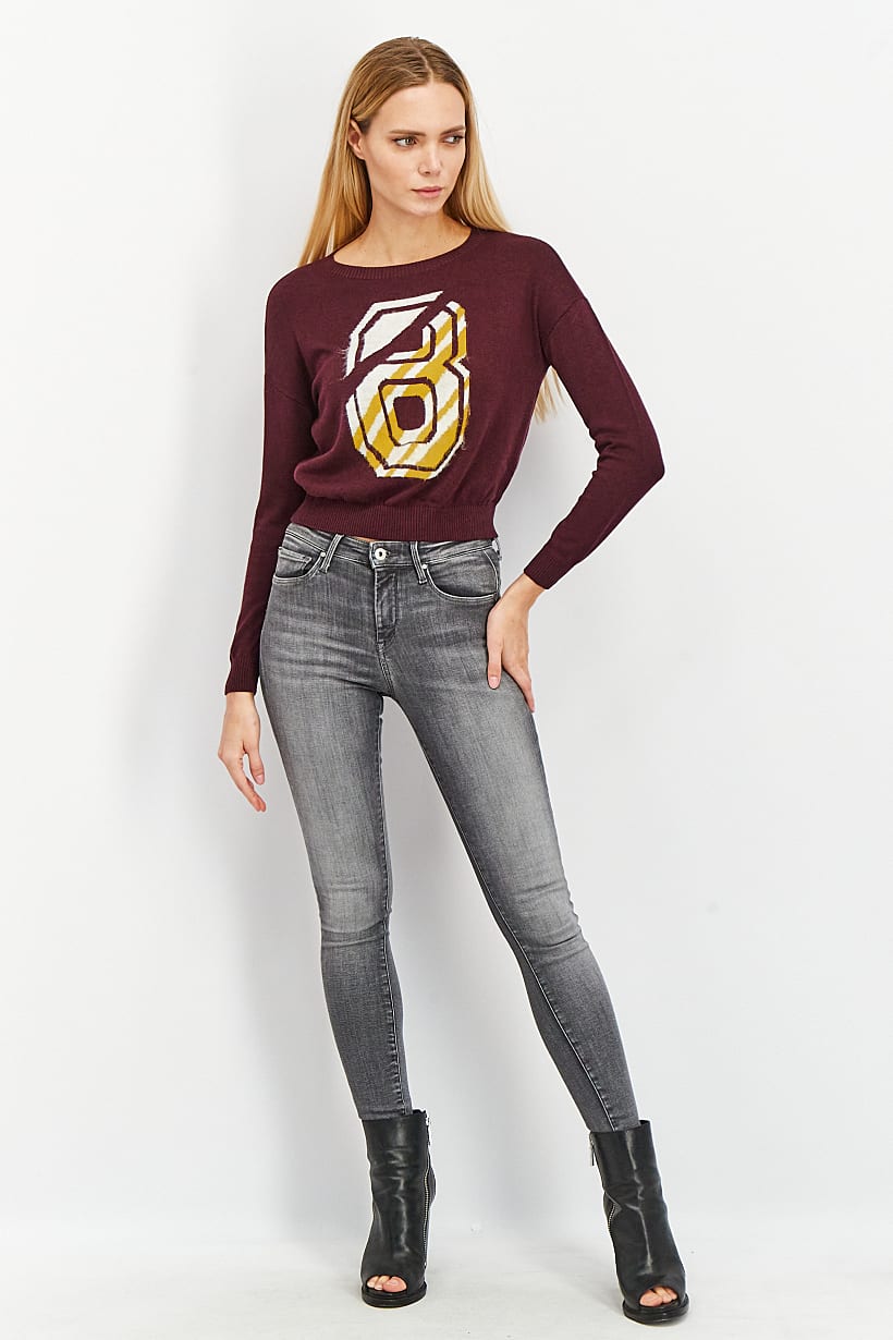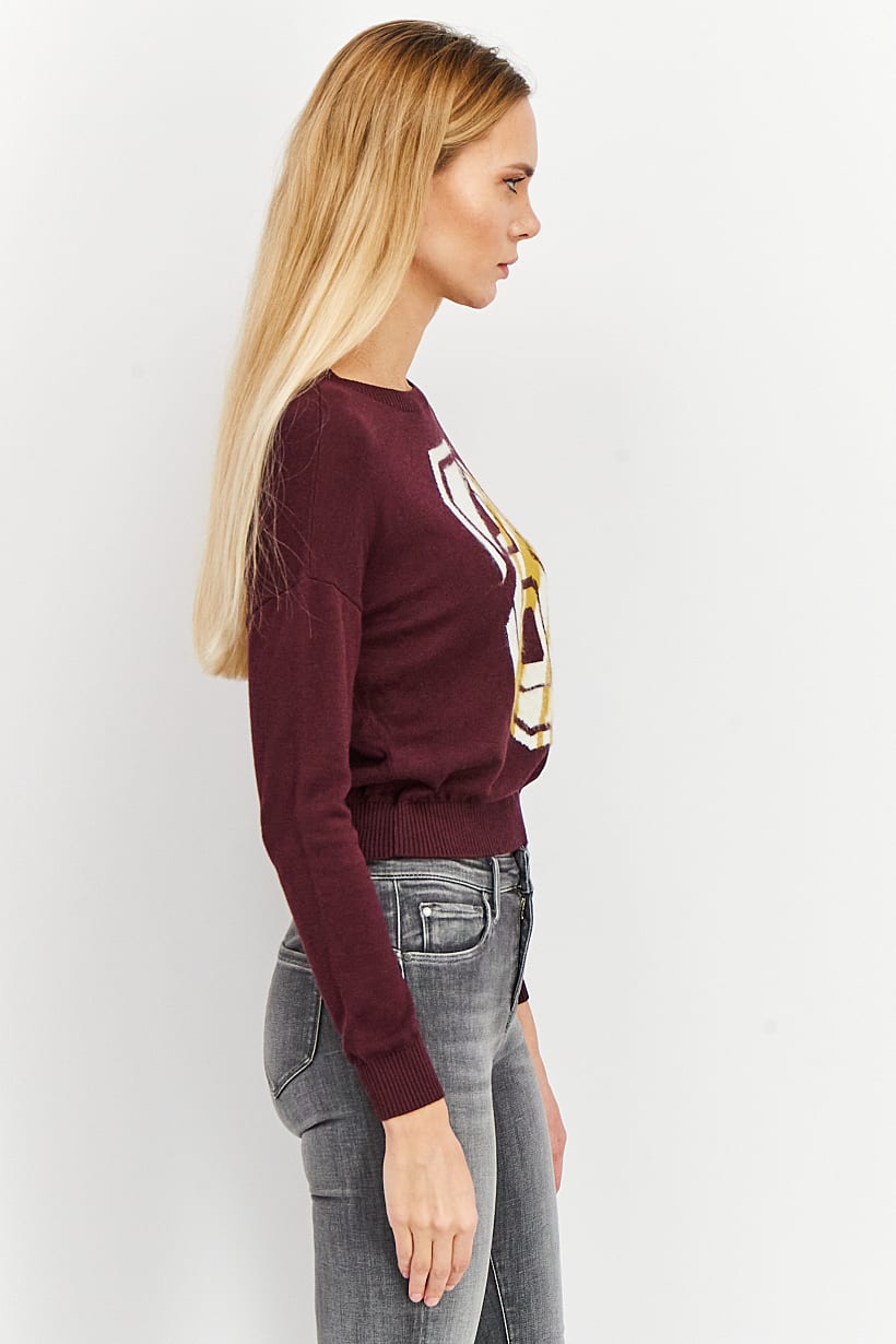 | nameOriginal | Women Round Neck Printed Sweatshirt, Dark Maroon |