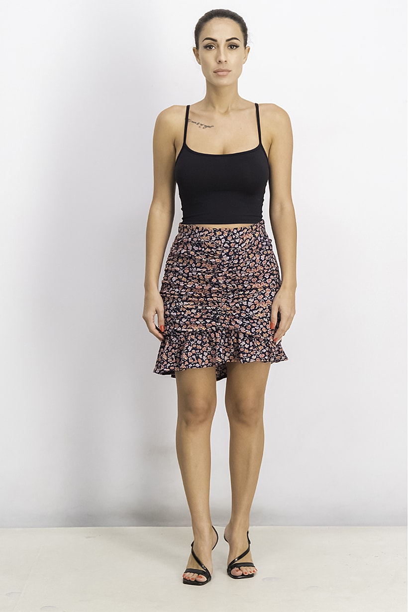 | sub_Categories | Women Clothing, Skirts, women floral ruffle mini skirt dark navy combo |