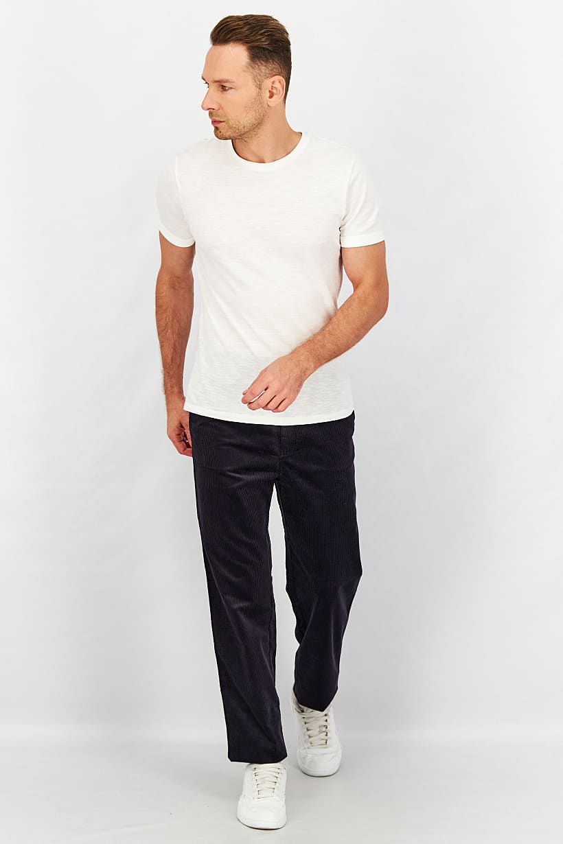 Dark Navy Corduroy Pants for Men with Regular Fit.