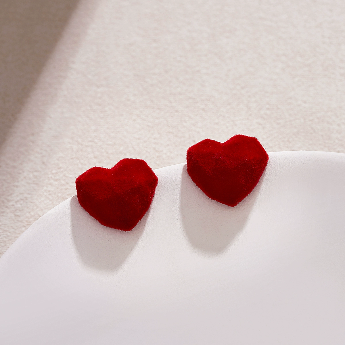 | nameOriginal | Dark red velvet peach heart earrings suitable for New Year |