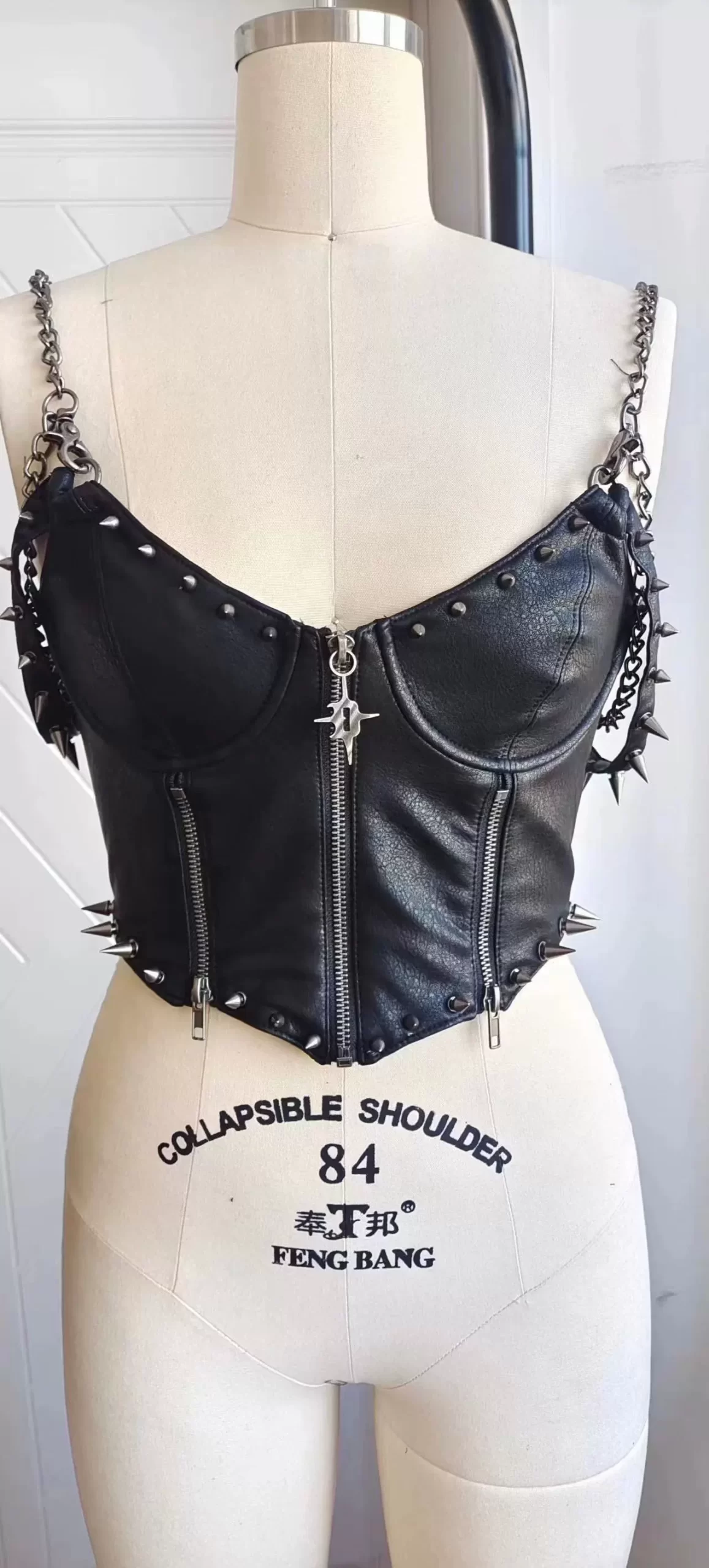 | nameOriginal | Dark rock style rivet three-piece suit sexy hot girl punk PU leather performance clothing camisole leather vest |