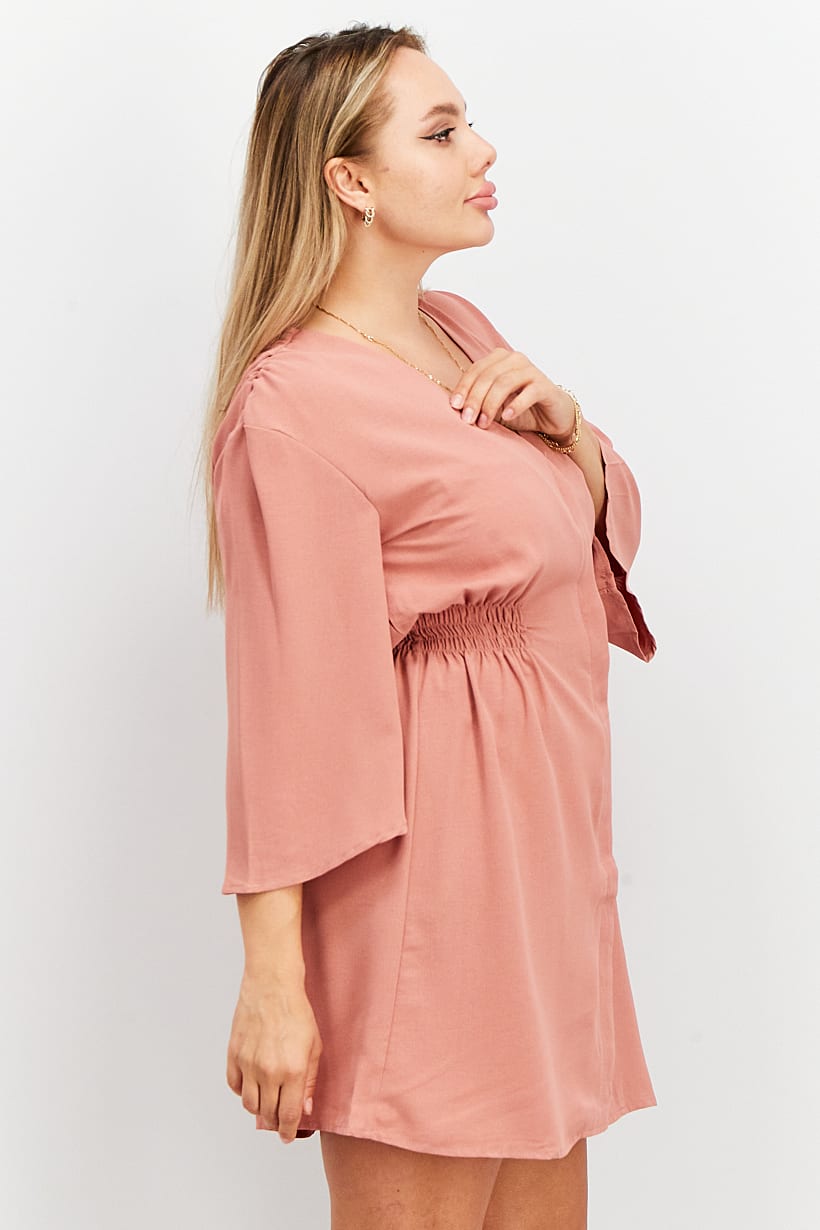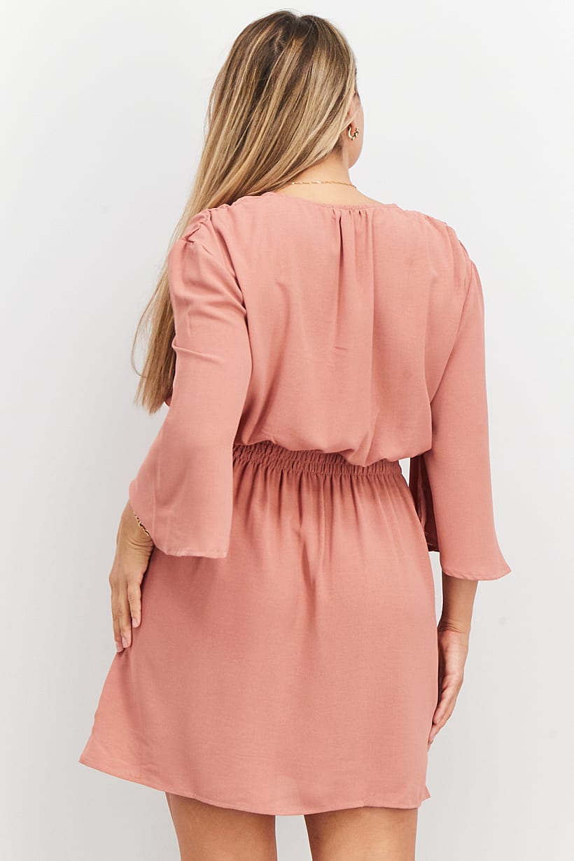 | nameOriginal | Women Flared Sleeve Buttoned Mini Dress, Dark Rose |