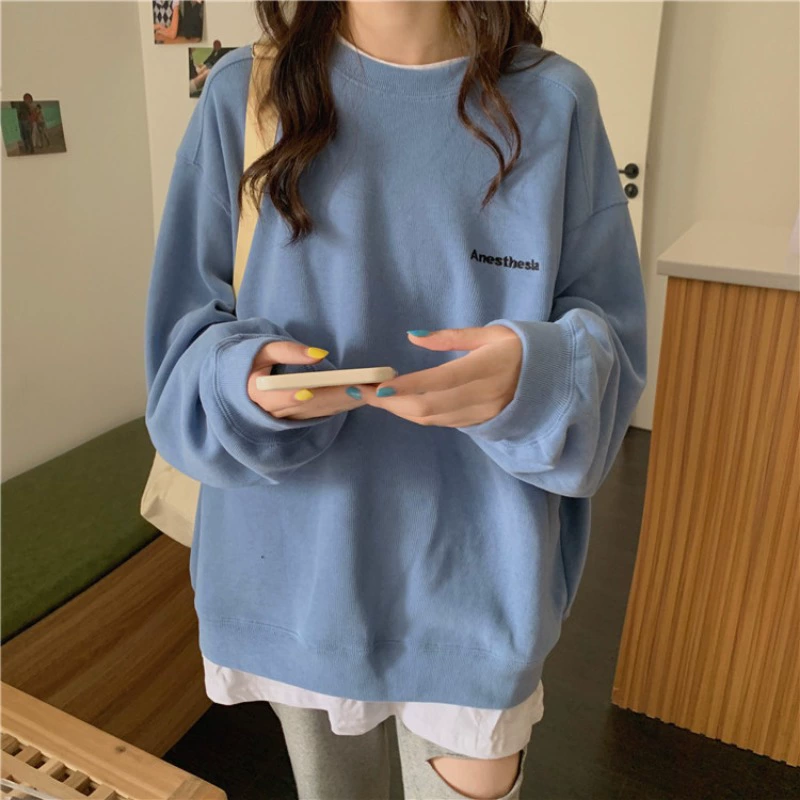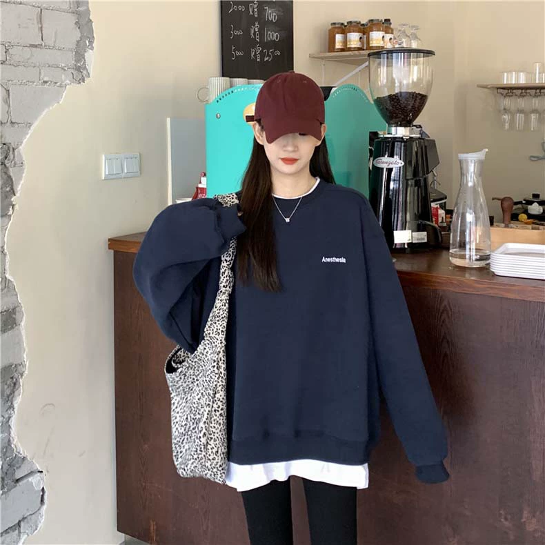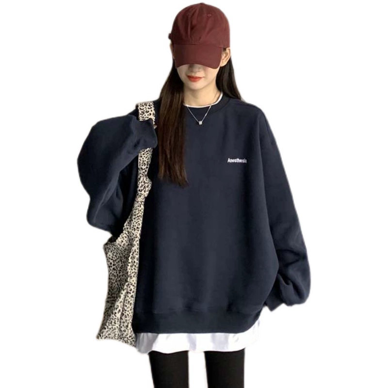 Dark sapphire blue fake two-piece sweatshirt for women autumn and winter 2024 new popular oversize loose velvet thickened jacket