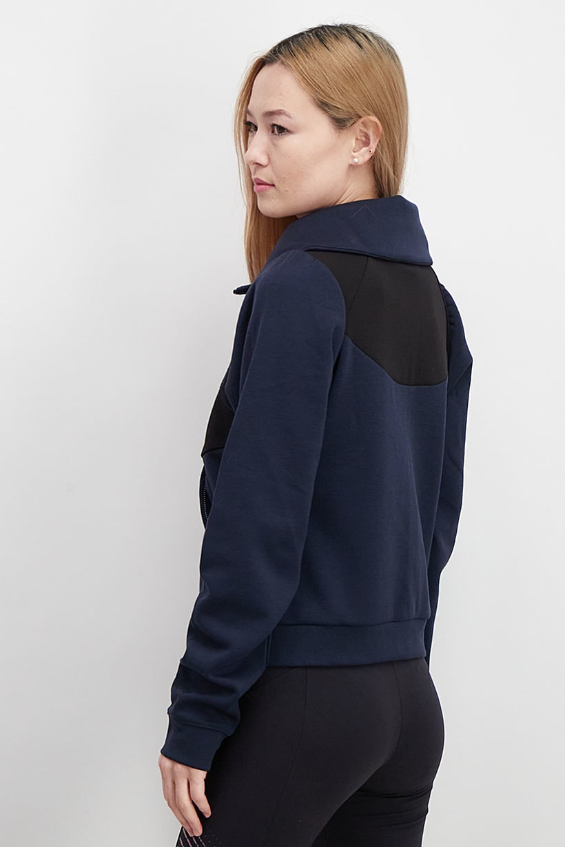 Care : Machine washable, Fit : Sportswear Fit, Ideal For : Women, Size shown : US, Thickness : Medium, Type of Sport : Training, Types of Hem : Straight hem, Types of Neckline & Collar : Spread collar , Types of Sleeve : Longsleeve, Disclaimer : Product color may slightly vary due to photographic lighting sources or your monitor settings., Fabrics : 70% Polyester, 25% Viscose, 5% Elastane, Pattern & Print : Embroidered logo, Sportswear Type : Jackets, Types of Closures : Zipper closure, Color Family : Navy Blue,