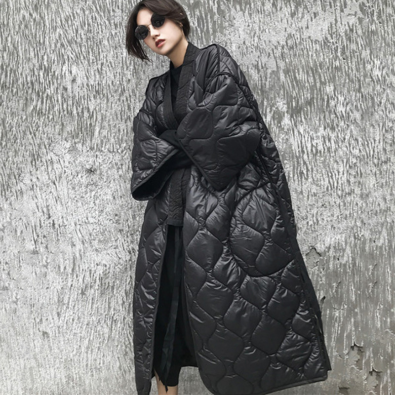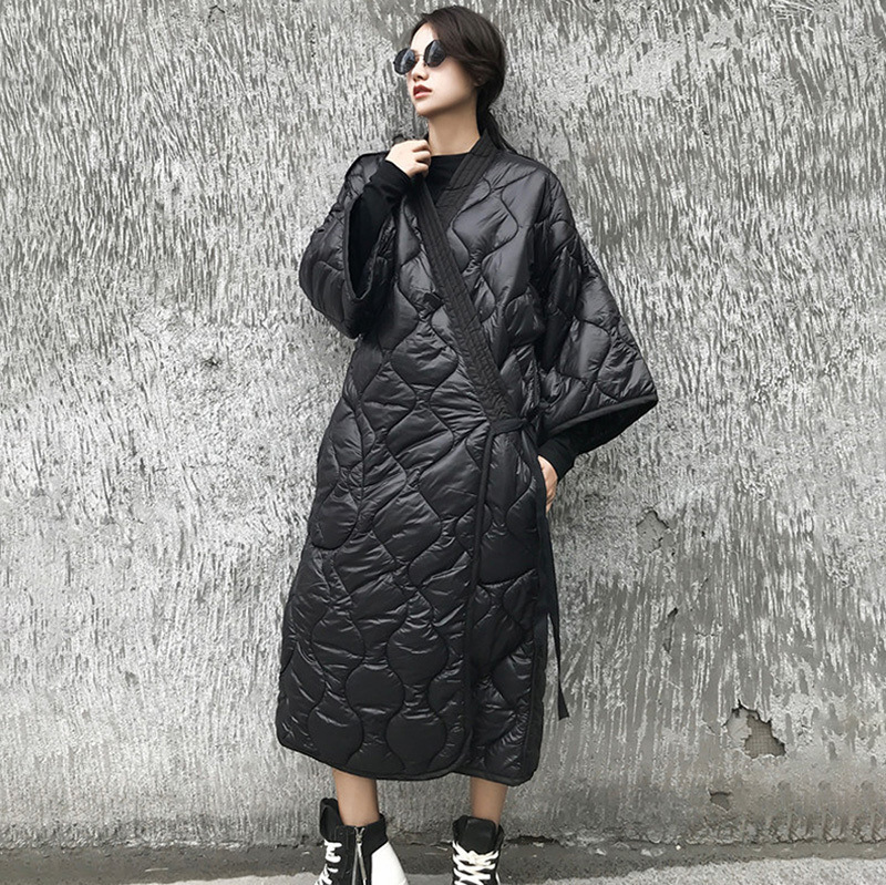 | nameOriginal | Dark style winter New Japanese lace-up nightgown V-neck rhombus plaid loose plus size long cotton-padded coat cotton-padded coat for women |