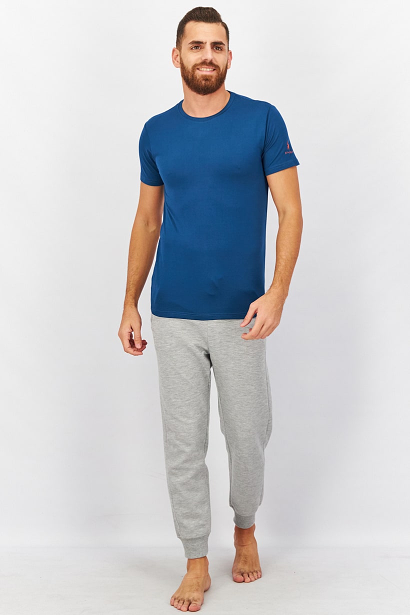 Men Clothing, Sleepwear / Homewear, men crew neck short sleeves plain pajama top dark teal