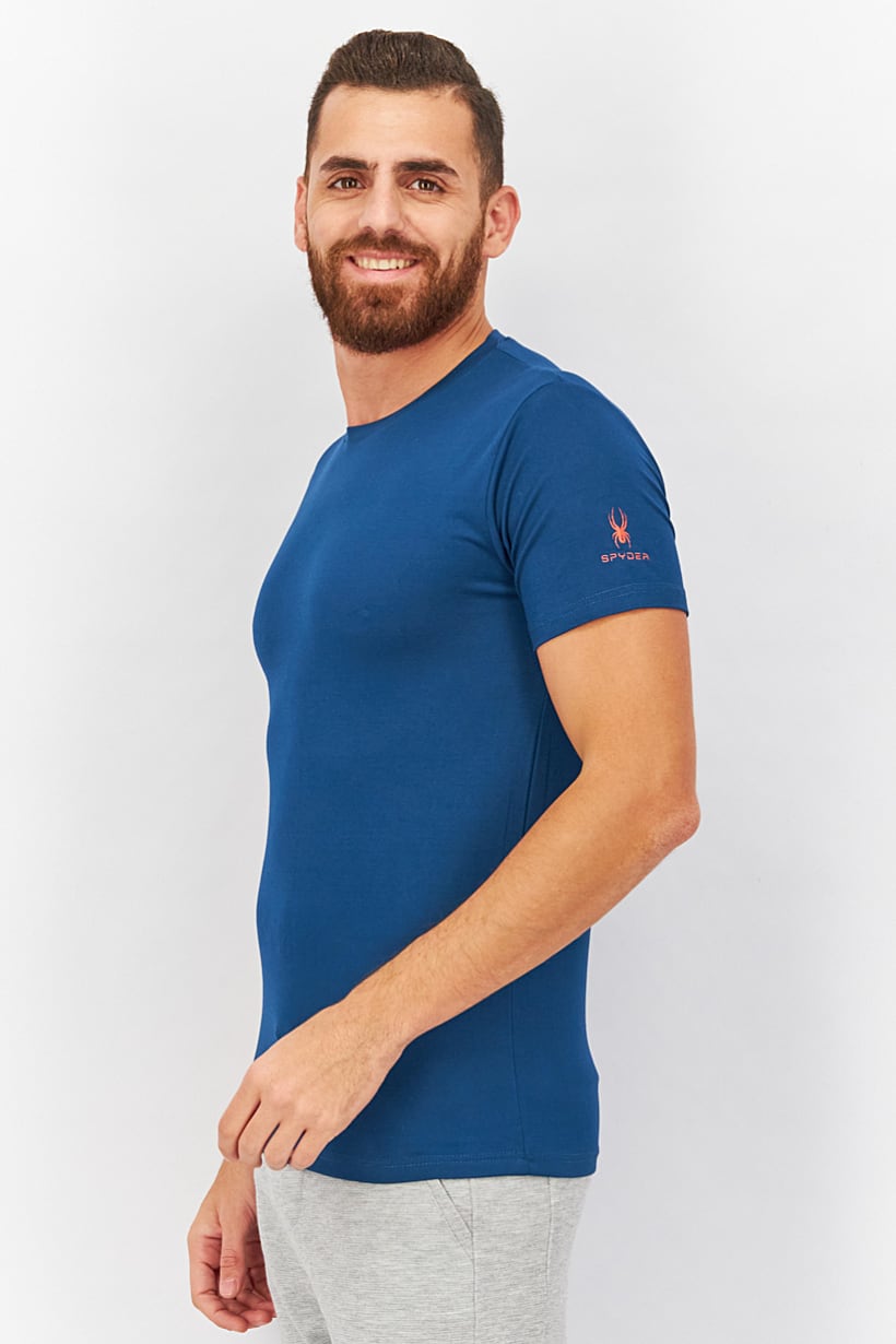 Men Crew Neck Short Sleeves Plain Pajama Top, Dark Teal