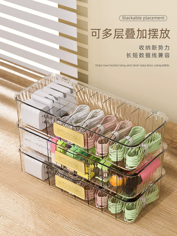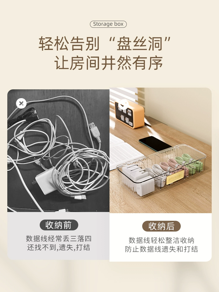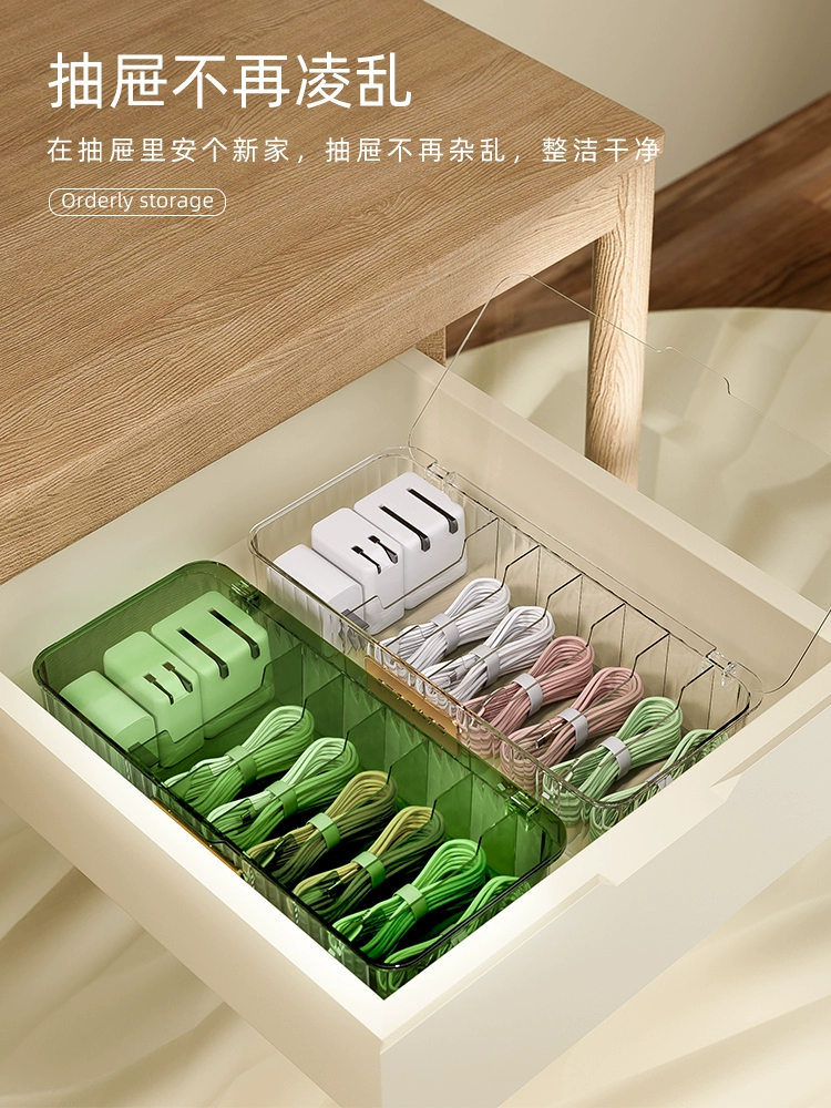 Data cable storage box power charging cable mobile phone charger plug organizer desktop cable management box cable winder