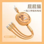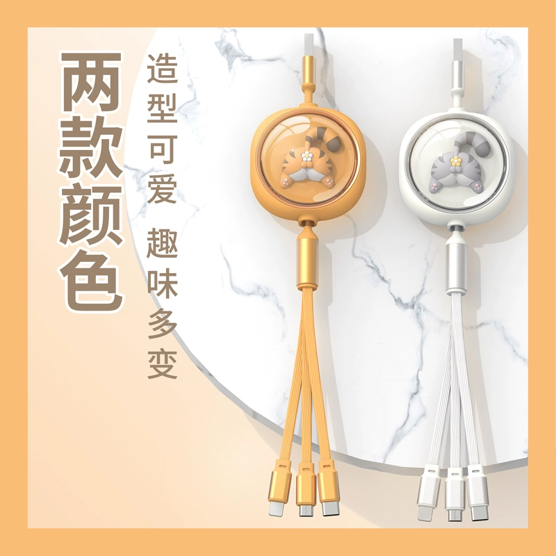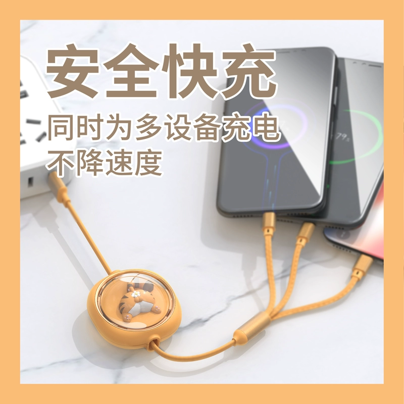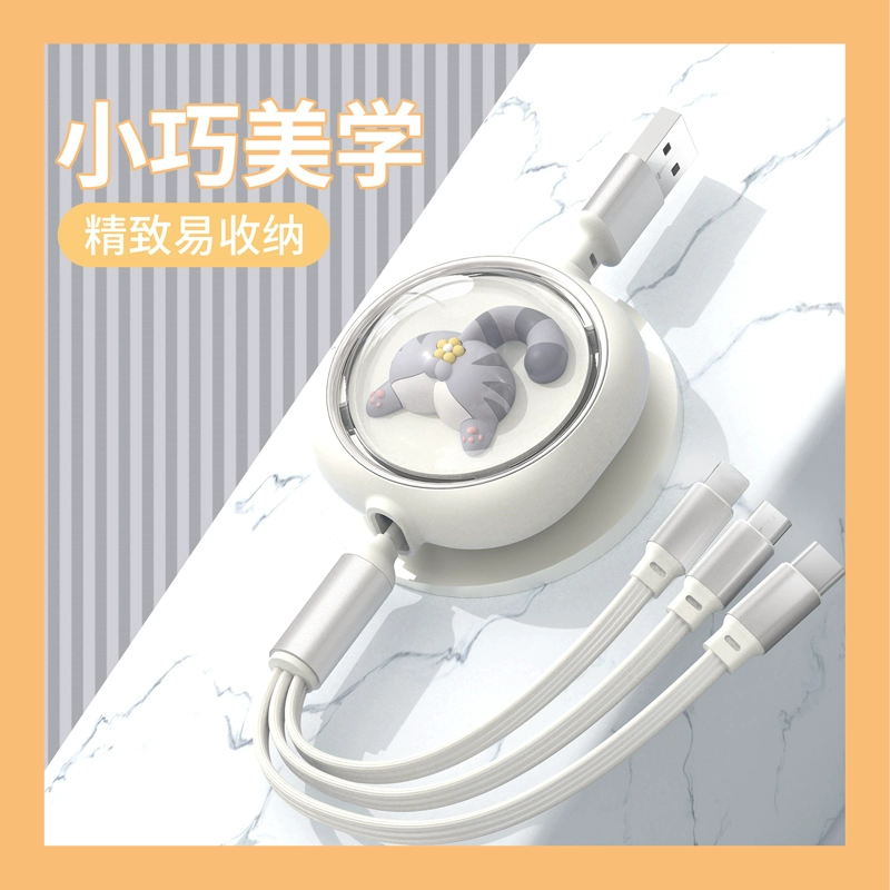 Data cable three-in-one fast charging suitable for Apple Huawei multi-purpose three-wire cute mobile phone tablet typec Android multi-function retractable 3 extended one-to-three magnetic car charging cable