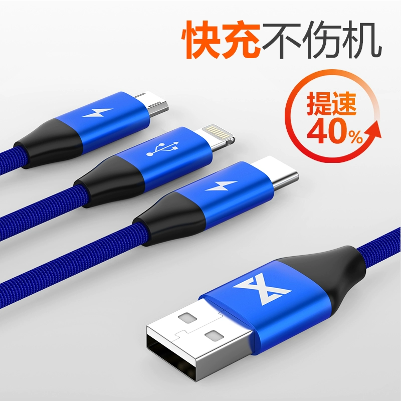 Data cable three-in-one suitable for Apple Android Type-C mobile phone charging cable iphone15 one drag three fast charging threading wire header