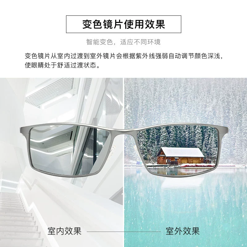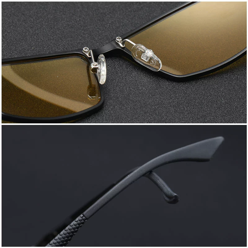 Day and night color-changing polarized sunglasses, men's sunglasses, square glasses for drivers, anti-UV