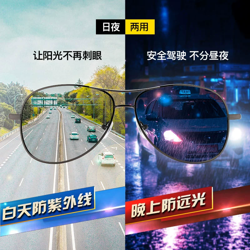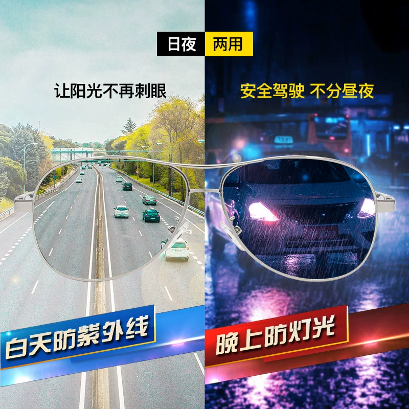 Day and night dual-use color-changing polarized sunglasses for driving, men's sunglasses, men's glasses, anti-UV toad glasses