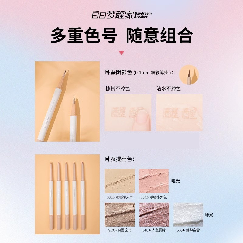 | nameOriginal | Daydream Wake Home Double-headed Sleeping Silkworm Pen Female Pearlescence Not Easy to Simi Official Flagship Store for Novice and Beginner with Makeup |