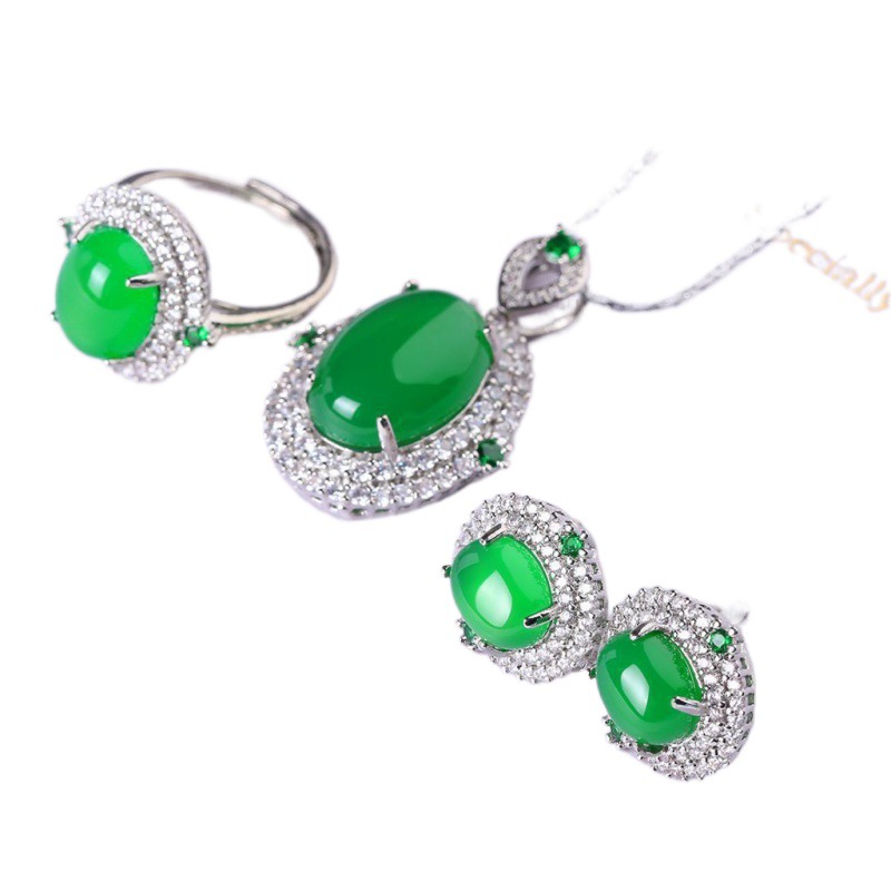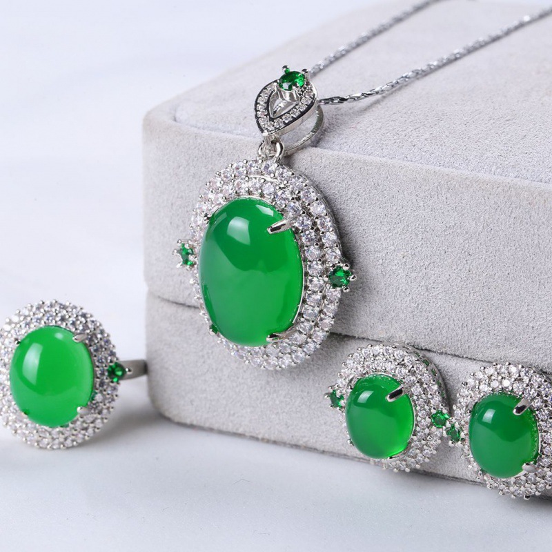 | nameOriginal | Dazzle Agate Pendant Chalcedony Three-Piece Set Chalcedony Luxury Inlay suit Live Selling Ring Necklace |