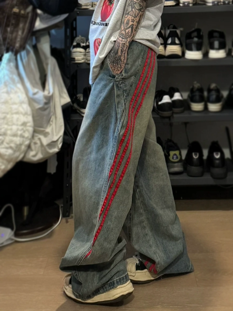 | nameOriginal | DDNX striped patchwork distressed loose bf jeans |