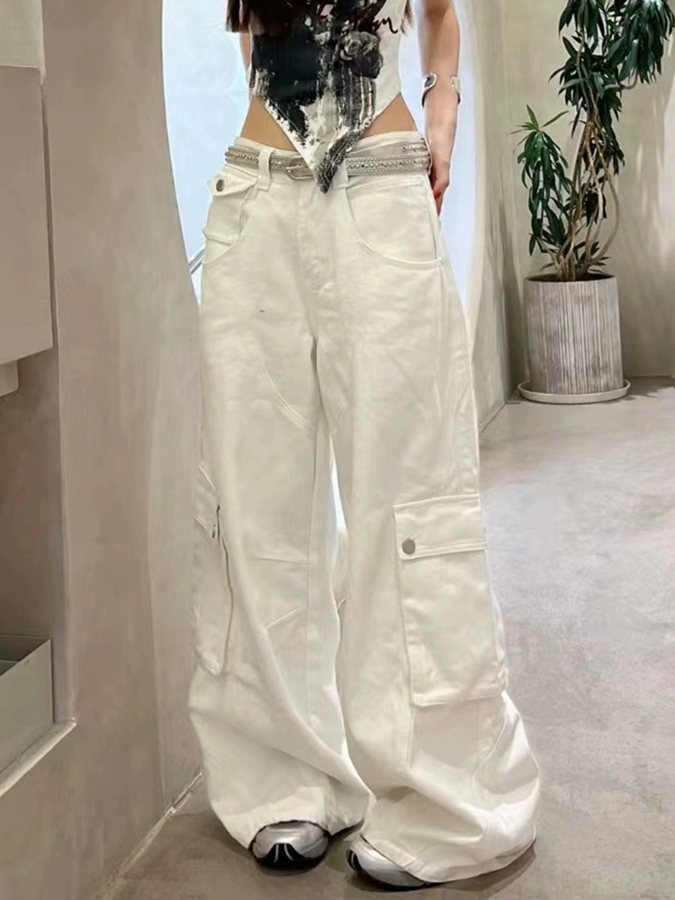 | nameOriginal | DDNX white high-waisted straight wide-leg pants overalls |