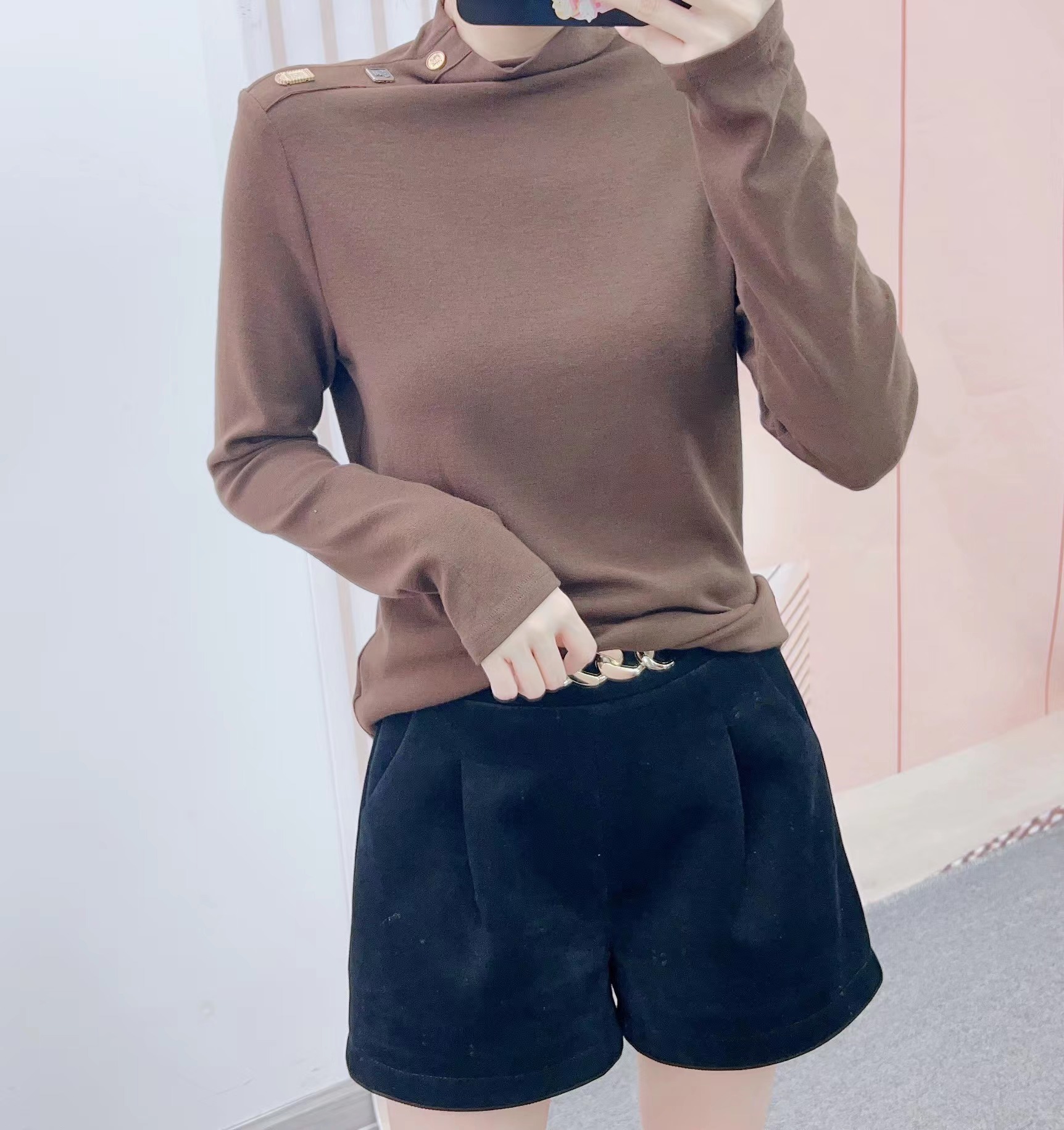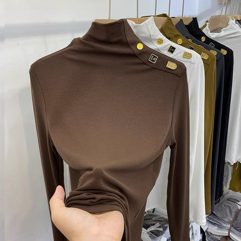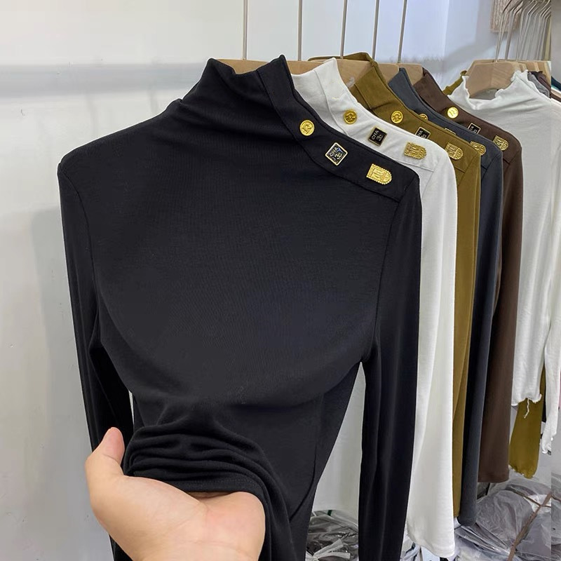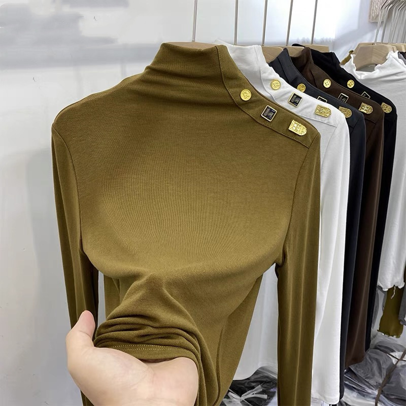 | nameOriginal | De Rong Base Shirt Women's Spring and Autumn Half High Collar 2024 New European Beautiful Fashion Western Style Shirt |