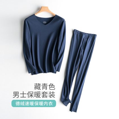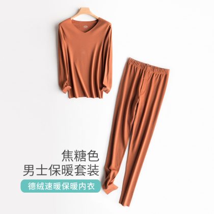 De velvet seamless thermal underwear men’s suit fleece-lined thickened self-heating constant temperature cold-proof autumn clothes long pants women’s winter