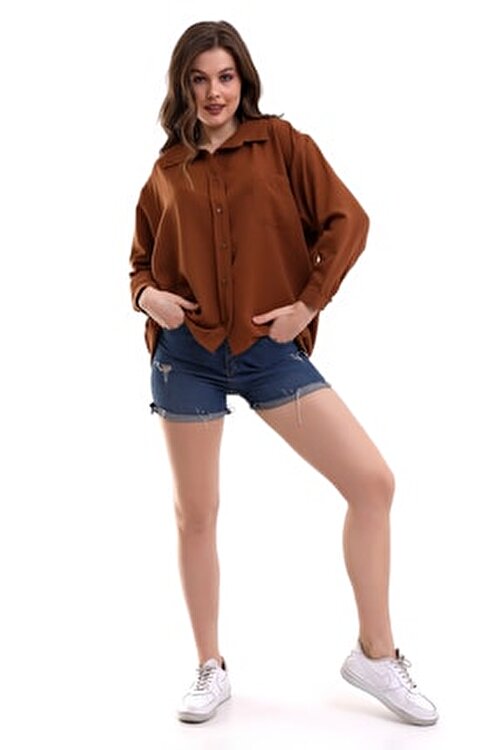DeChival Women’s Plain Shirt with Pockets/Women’s Wıde Shirt
