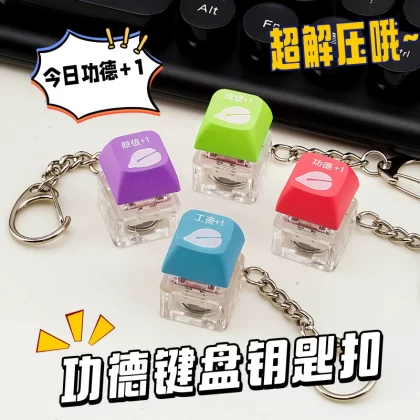 | nameOriginal | Decompression keyboard luminous merit + 1 wooden fish keycap keyboard press electronic wooden fish key chain decompression vent toy |