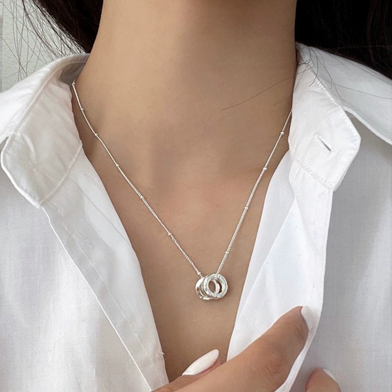 | nameOriginal | Decoration e-triple simple ring pendant necklace for women, versatile temperament, cool style, high-end sense, S925 silver clavicle chain for women |