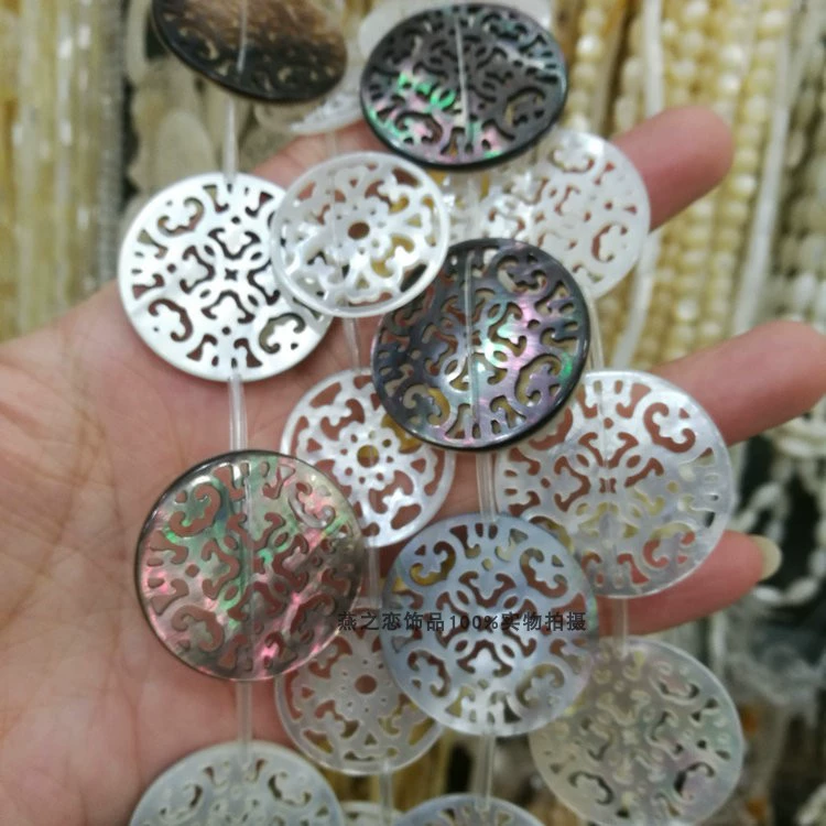 Deep sea shell hollow flower piece, black shell and white butterfly shell carved disc concentric knot pendant diy jewelry material
