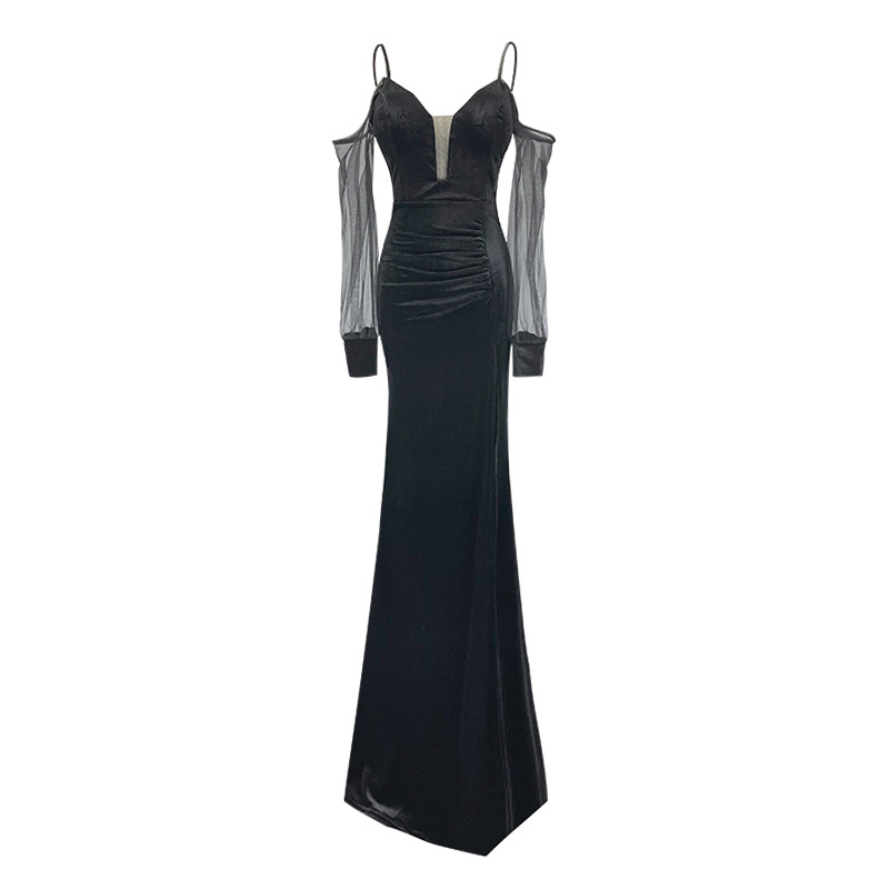 | nameOriginal | Deep V Low-cut Sexy Mesh See-through Maxi Dress with Slip Strap Elegant Slim-fit Split Velvet Evening Dress KTV Dress |