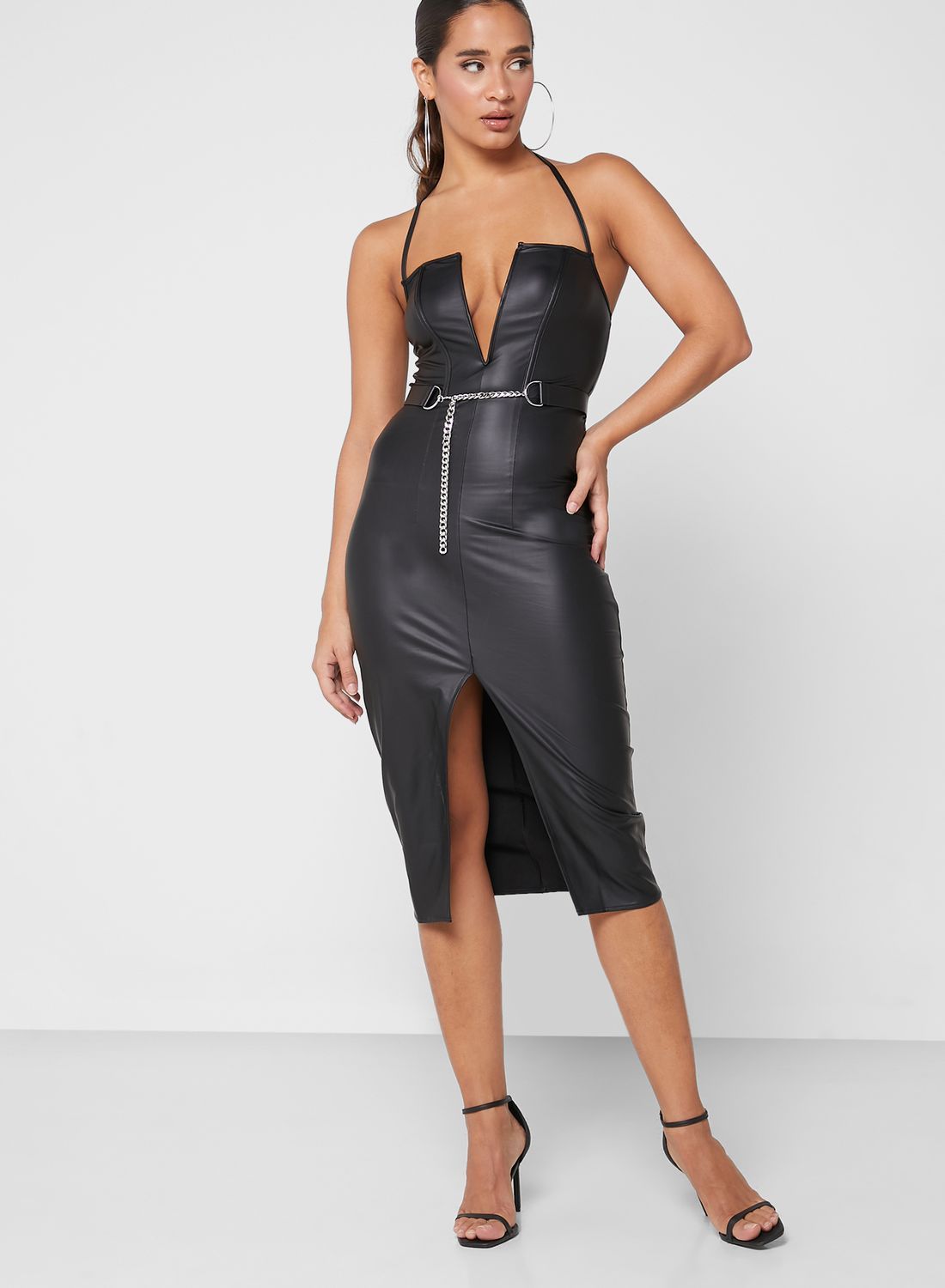 | nameOriginal | Plunge Neck Front Slit Dress |