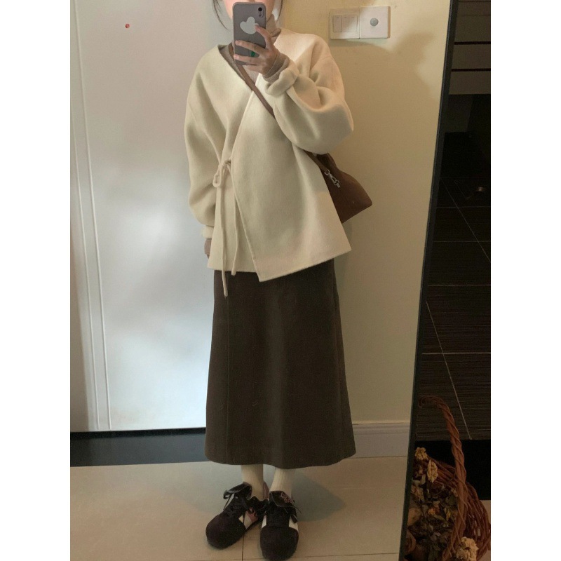 | nameOriginal | Deep winter clothes with three-piece suit French woolen coat half-length skirt unique top super nice suit |