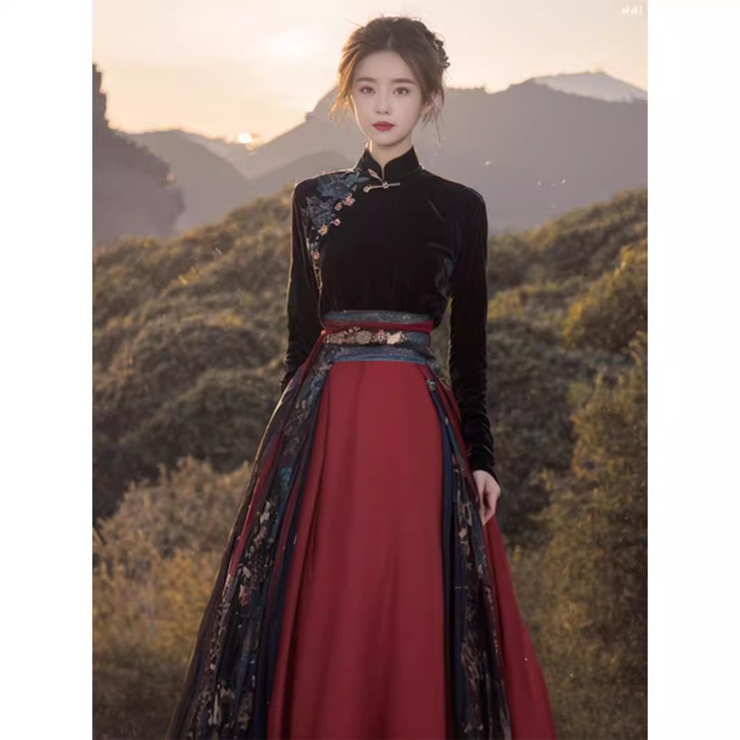 | nameOriginal | Deep winter wear with a set of new Chinese style national style half-length skirt Christmas New Year robes Dragon Year Han suit skirt |