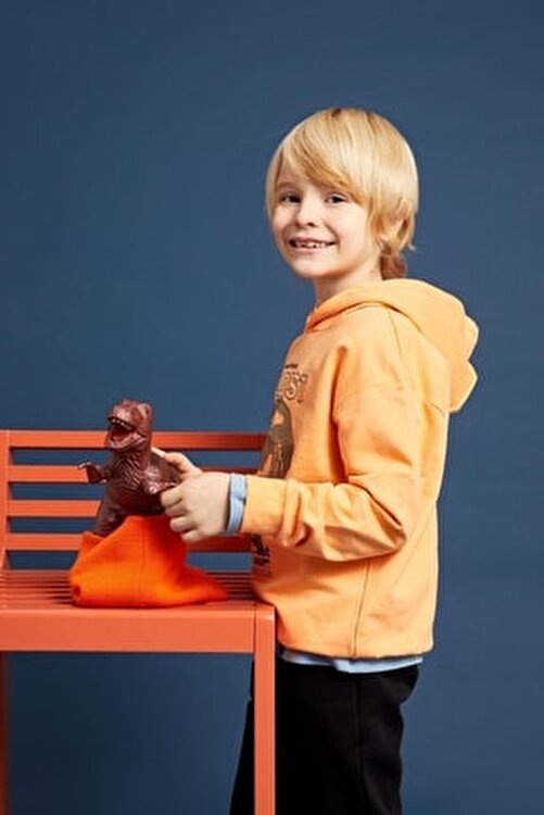 Cotton blended sweat fabric, hoodie, long sleeves, hem and sleeve elastic rib fabric will be your choice with relax fit dry head print model, DeFacto Boys Oversize Fit Hooded Dry Head Printed Sweatshirt which you will combine with jeans and jogger tracksuits at school, trips and playgrounds