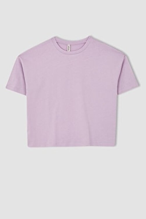DeFacto Girls’ Crop 2 Combed Short Sleeve T-Shirt will be your choice with its water green color purple print and energetic look where you will make style combinations with leggings, sweatpants and trousers on trips, school and sports with a cotton crew neck, low shoulders, short sleeves and printed model.