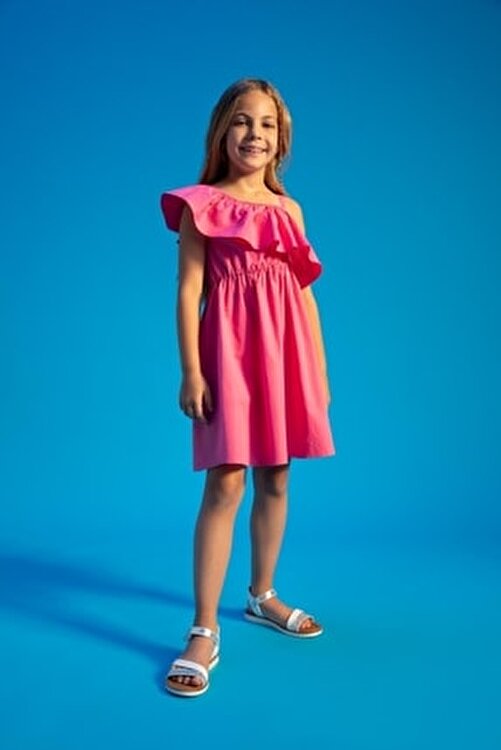 With cotton poplin fabric, plug-shoulders, flounces, midi length pink color stylish model, yellow color model that you will combine with your sandals at school parties, trips, birthdays and holidays, you will have your choice with the pattern dresses with different models DeFacto da!