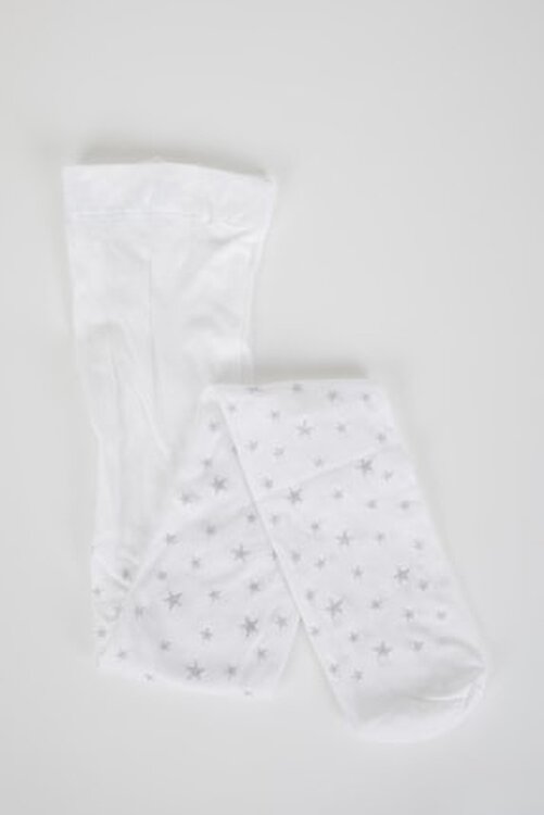 DeFacto Girls' Pantyhose that provides comfortable all-day wear with the star pattern long pantyhose model in white color.