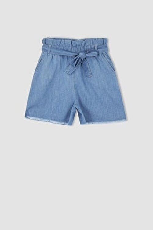 Defacto Girls' Paperbag Elastic Waist Belted Jean Shorts