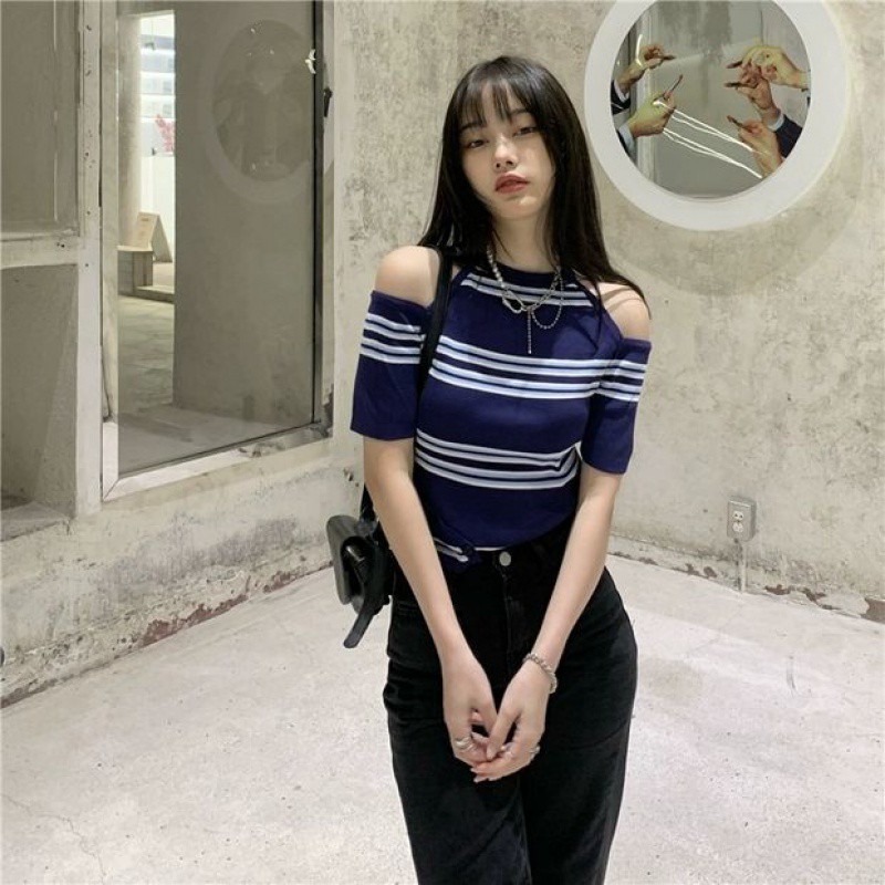 | nameOriginal | Defitio Short Shoulder T-shirt Women's Summer Short-sleeved Slim-fit High-waisted Spice Girl Design Knitted Top |