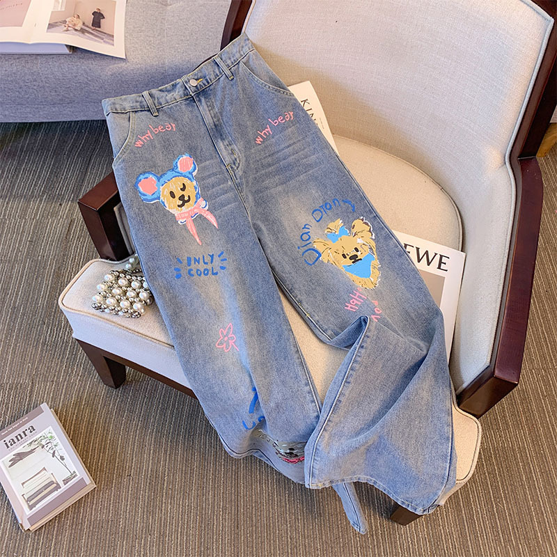 | nameOriginal | Deformation ce plus size women's chubby girl jeans puppy printed elastic straight pants spring and summer new 2024 |
