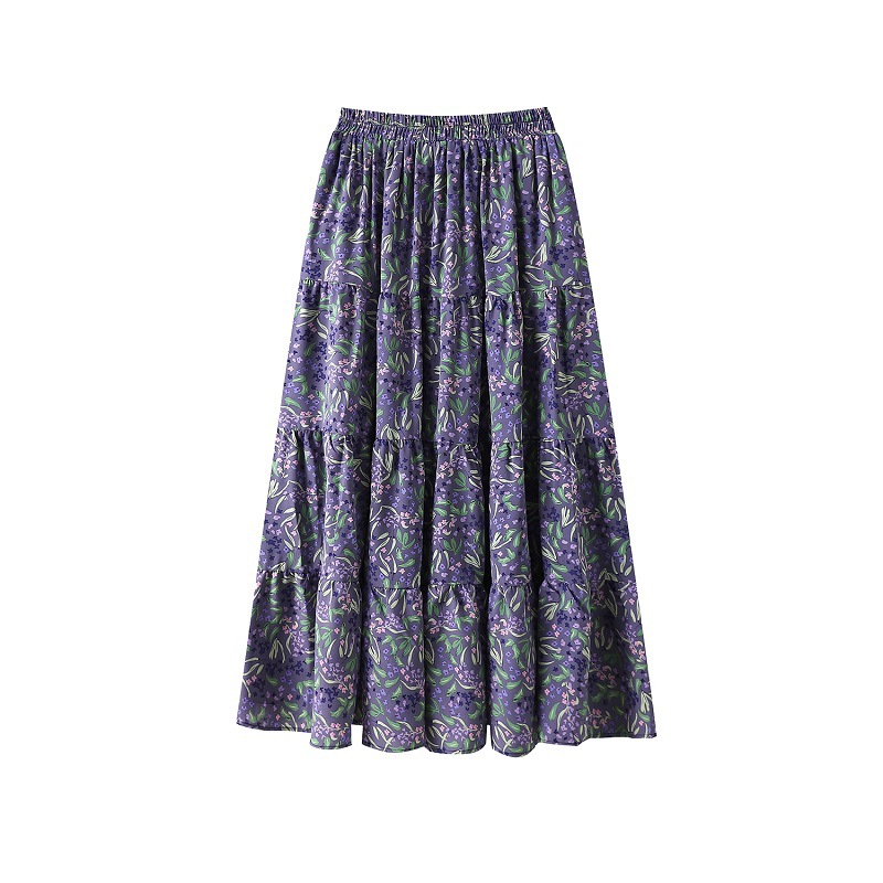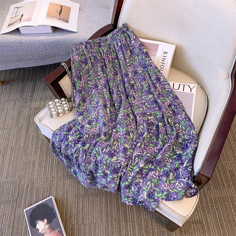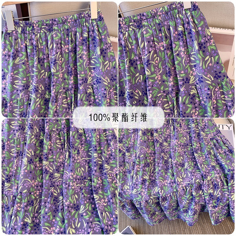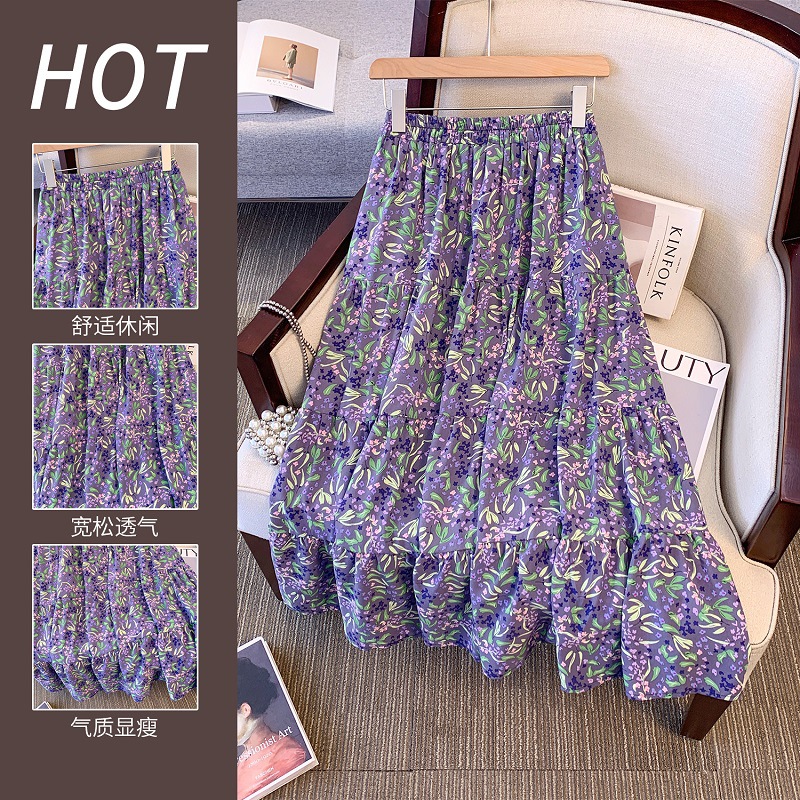 Deformation strategy plus size women's chubby girl summer floral A- shaped skirt 2024 new high waist big swing temperament skirt
