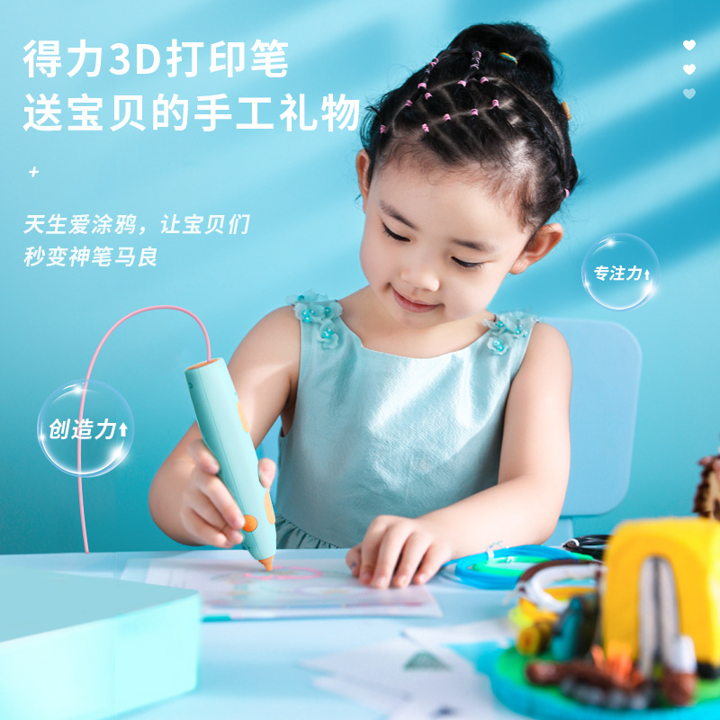 Deli 74880 printing pen 3D 90 minutes long endurance children wireless low temperature painting pen intelligent printing pen Blue