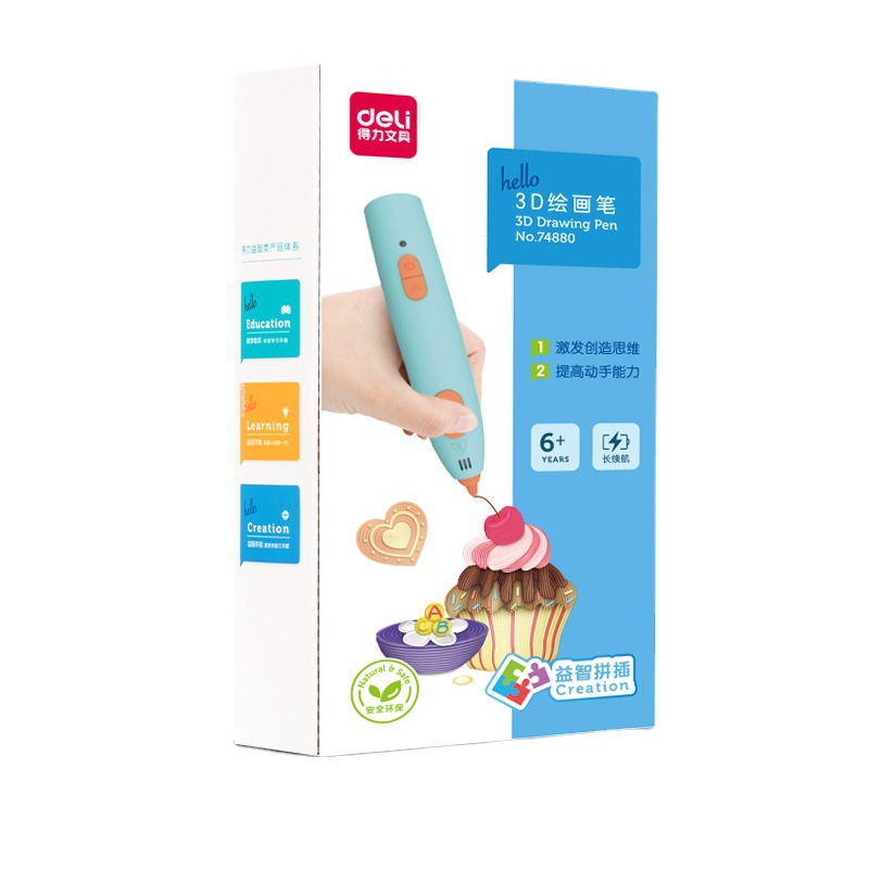 Deli 74880 printing pen 3D 90 minutes long endurance children wireless low temperature painting pen intelligent printing pen Blue