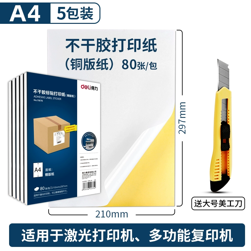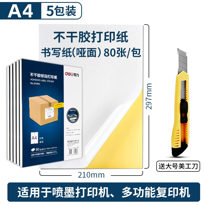| nameOriginal | Deli A4 self-adhesive printing paper with adhesive printing paper a4 paper with adhesive printing paper matte adhesive printing paper coated paper adhesive paper can be pasted kraft paper label paper color |