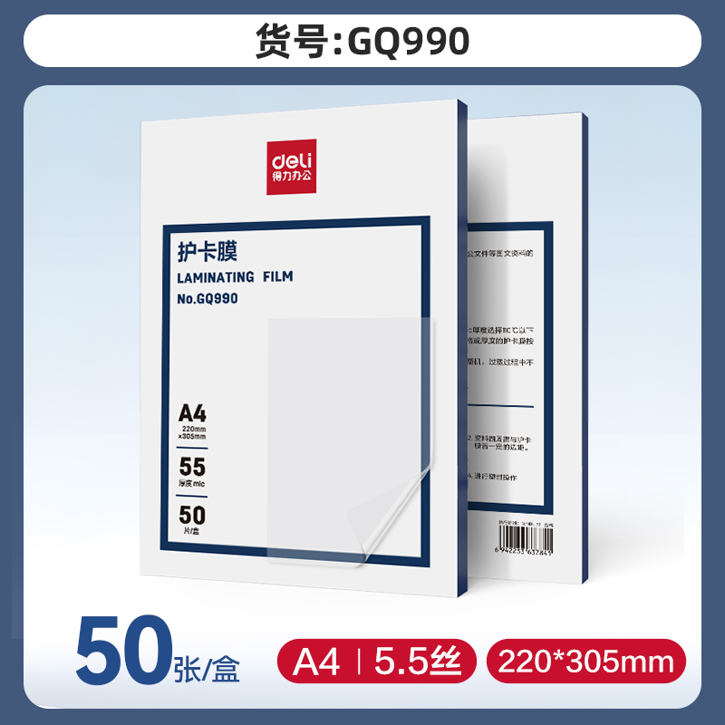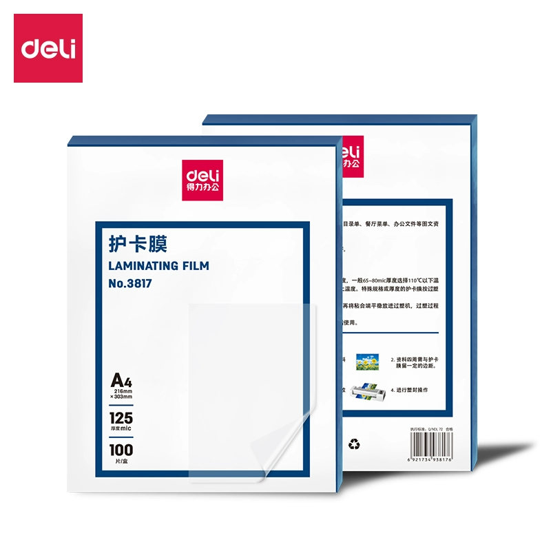 | nameOriginal | Deli plastic sealing film A4 card protective film sealing machine over plastic film a4 paper photo protective film A3 photo over glue film 7 inches 6 inches 5 inches 3 inches document heat shrink film transparent plastic paper 7 silk plastic sealing machine film |