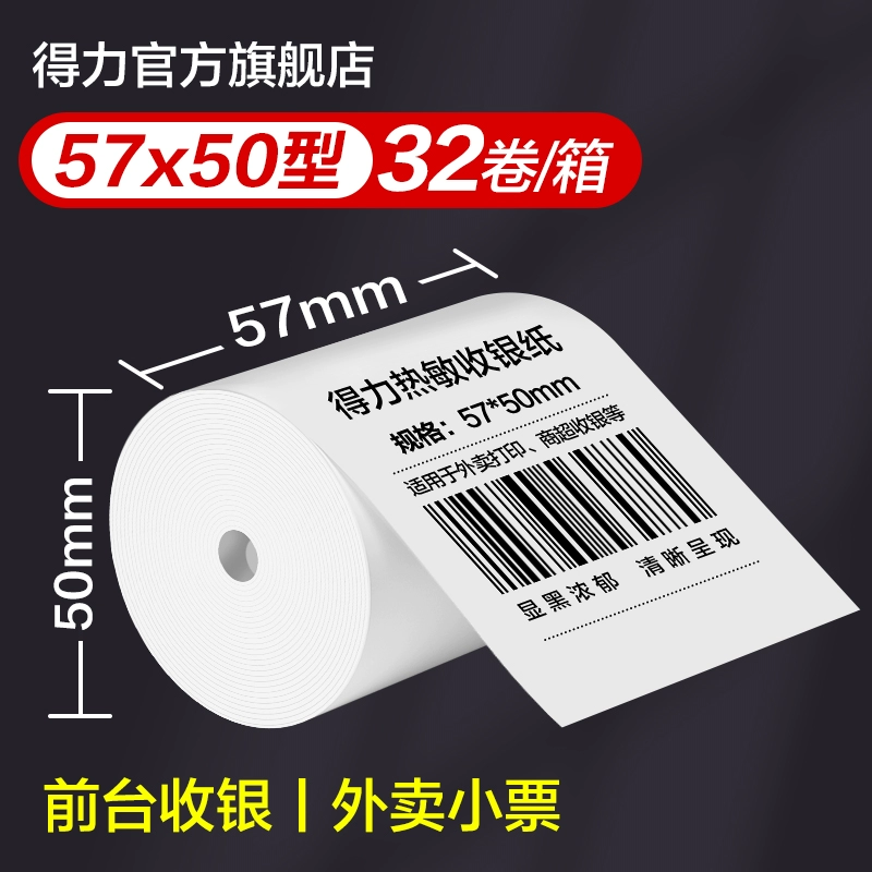 | nameOriginal | Deli Thermal Printing Paper Thermal Paper Cashier Paper Cashier Printing Paper Meow Meow Machine Thermal Paper Label Paper 57*50 Takeaway Receipt Printing Paper Roll 58mm Full Box Hospital Meituan Printing Paper  |