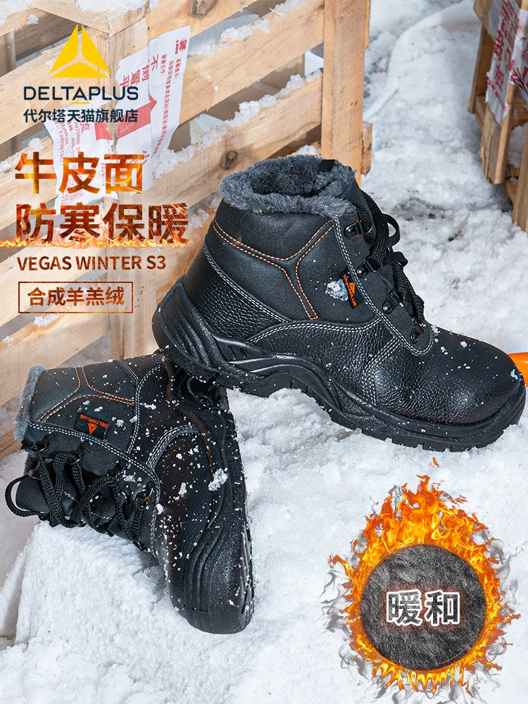 Delta cowhide labor protection shoes men’s anti-smash plus velvet autumn and winter electrician’s shoes anti-static puncture construction site safety shoes for women
