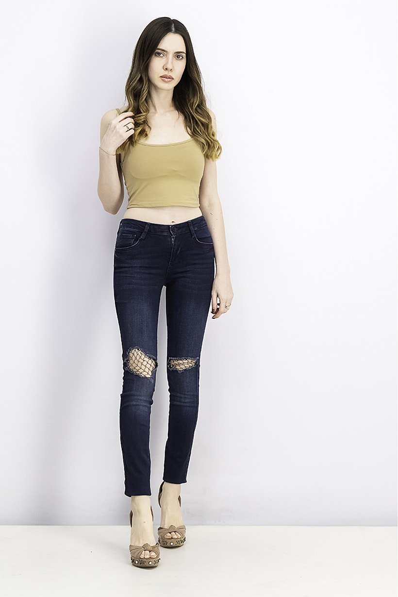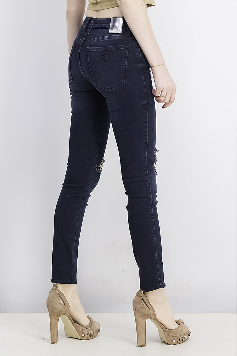 Bottom Hem : Straight, Care : Machine washable, Fit : Skinny Fit, Ideal For : Women, Leg Style : Skinny, Size shown : Inches, Stretch Type : Stretchable, Bottom Closure : Button, Zipper fly, Bottom Style/Pattern : Belt loops, Five pocket style, Fabrics : 97% Cotton, 3% Spandex, Occasion : Casual, Pattern & Print : Rip, Color Family : Blue,