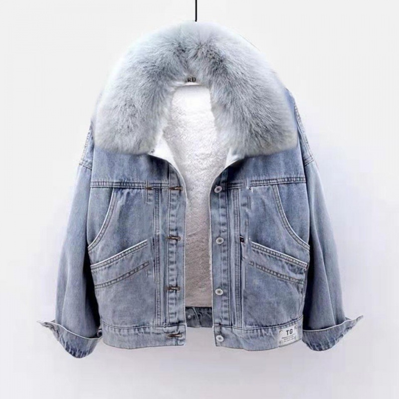 | nameOriginal | Denim coat for women autumn and winter western style fleece-lined thickened new warm thick fur collar fashionable all-match outer coat for women |