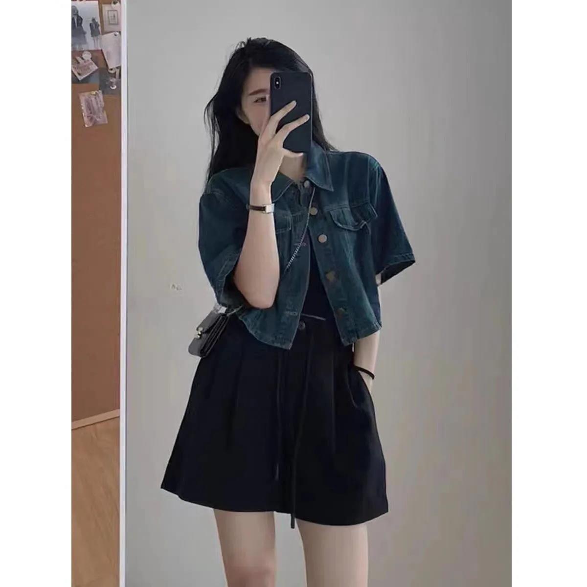 | nameOriginal | Denim Coat Shirt Women's Short 2024 New Summer Short Sleeve Cardigan Outer Wear plus size Korean Fashion Top Coat |