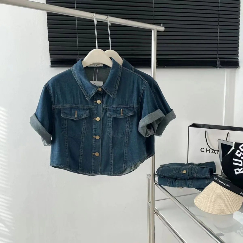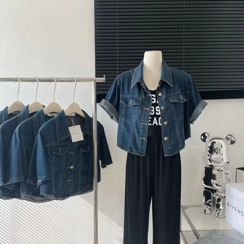 | nameOriginal | Denim coat shirt women's short 2024 new summer short sleeve cardigan outer wear plus size Korean fashion top |