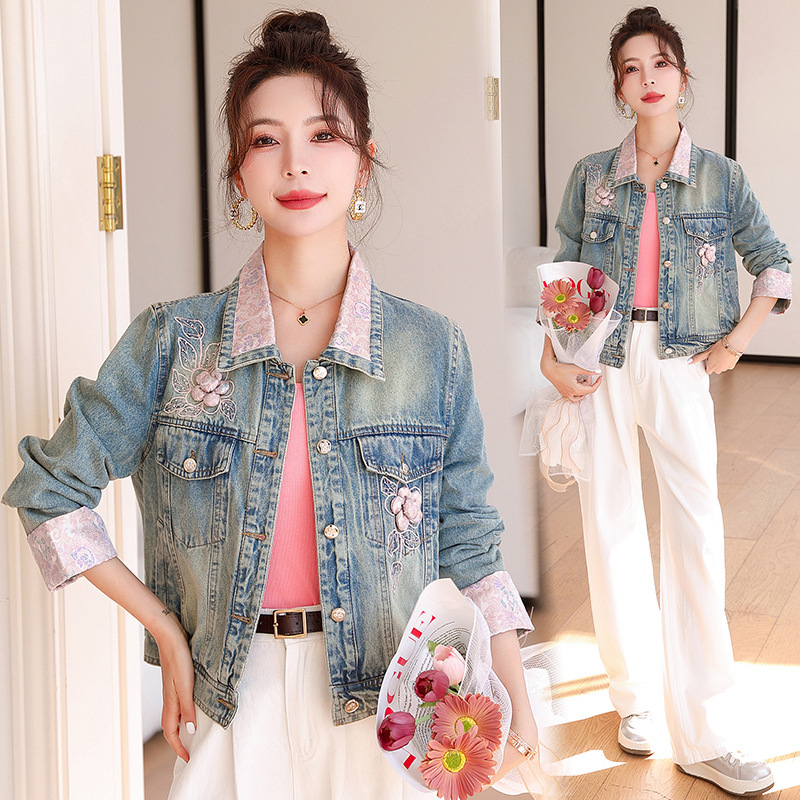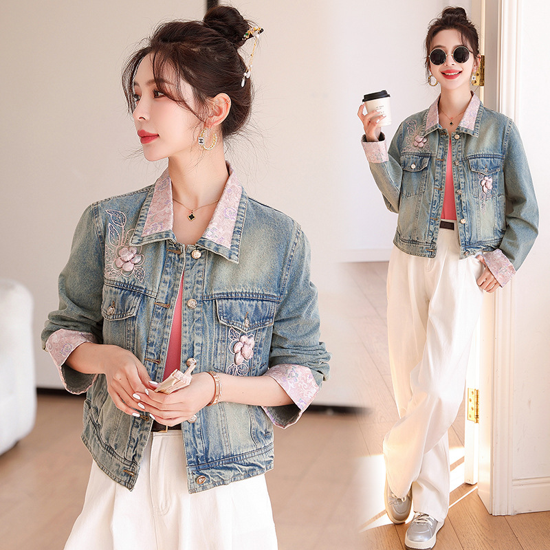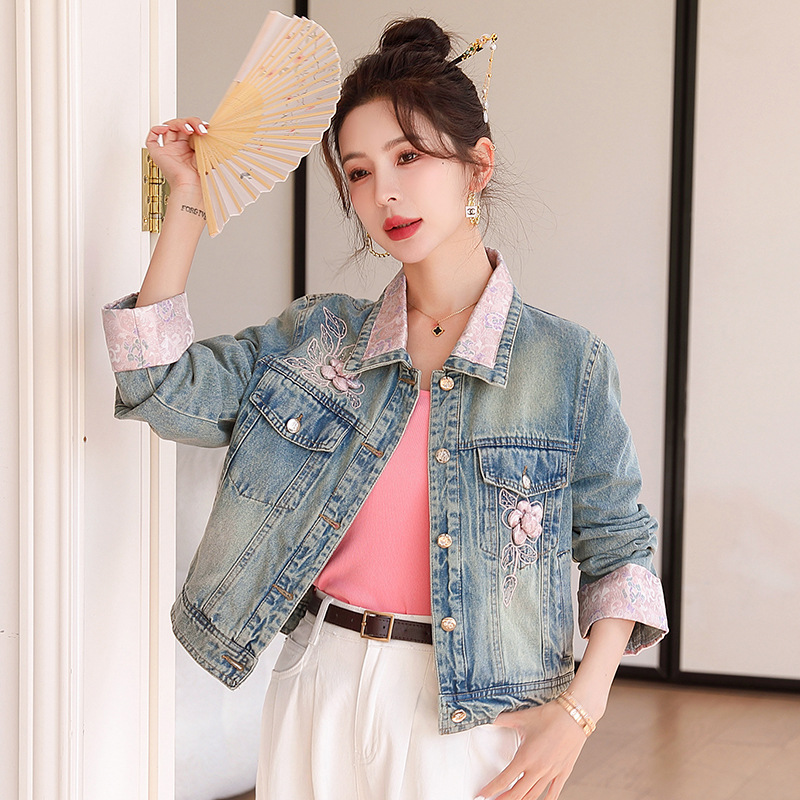 | nameOriginal | Denim Coat Women's 2024 Spring New Arrival Embroidered Beaded Sequins Advanced Sense National Style Casual Denim Top Jacket |