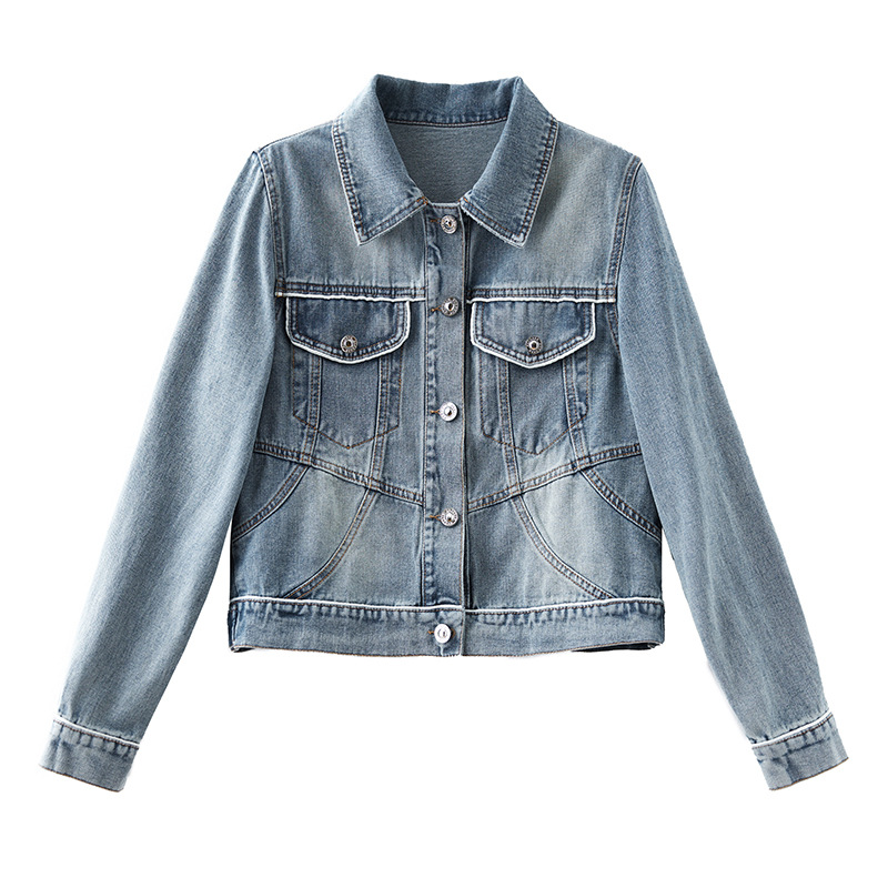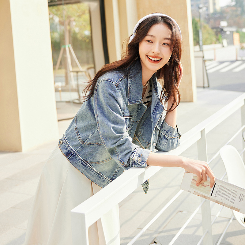| nameOriginal | Denim coat women's short 2024 spring new Korean style loose slimming small casual bright line edge top |